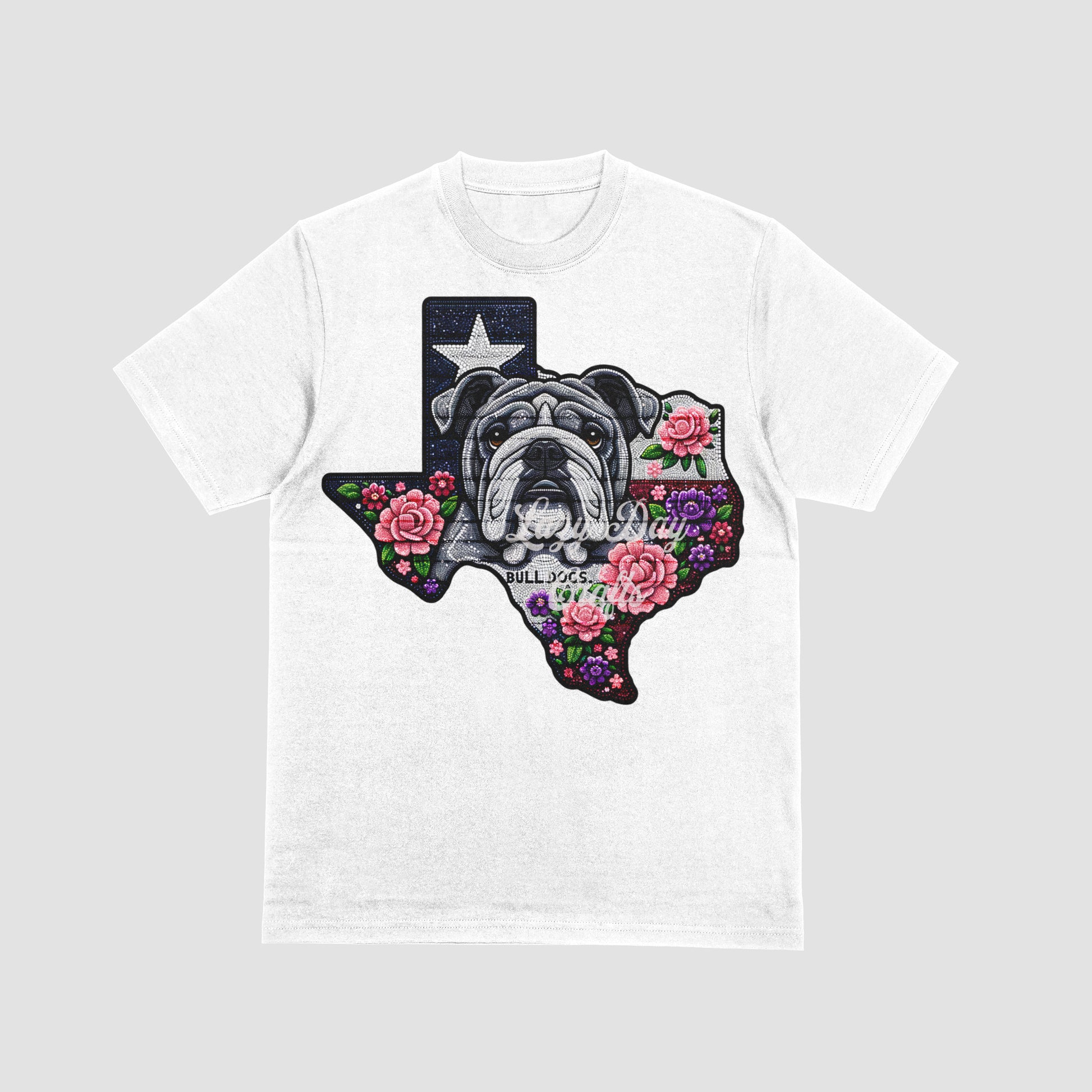 Experience the heart of Texas with the Pink Rose Bulldog of Texas Png. This charming design showcases a playful bulldog surrounded by pink roses against an iconic Texas backdrop. Show your love for this beloved breed with this warm and whimsical product.