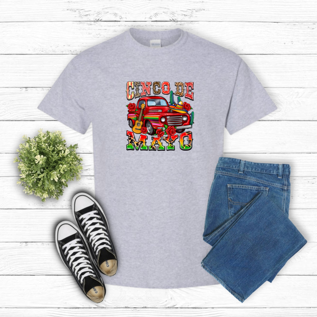 Celebrate with this vibrant Cinco De Mayo DTF transfer, showcasing a festive truck brimming with holiday symbols. Ideal for crafters and small businesses to create unique apparel or party decor. This premade, ready-to-press design makes holiday crafting simple and fun for everyone.