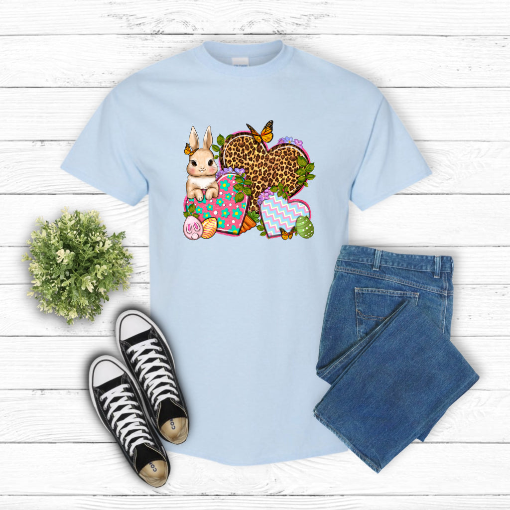 Elevate your Easter apparel with this trendy leopard print bunny heart DTF transfer. Combining holiday charm with a fashionable animal print, it's perfect for creating unique shirts, totes, and more. A stylish ready-to-press option for Easter crafting and custom garments.